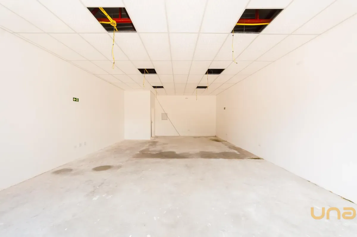 Sala comercial ampla com pé-direito alto, proporcionando maior sensação de espaço e diversas possibilidades de layout