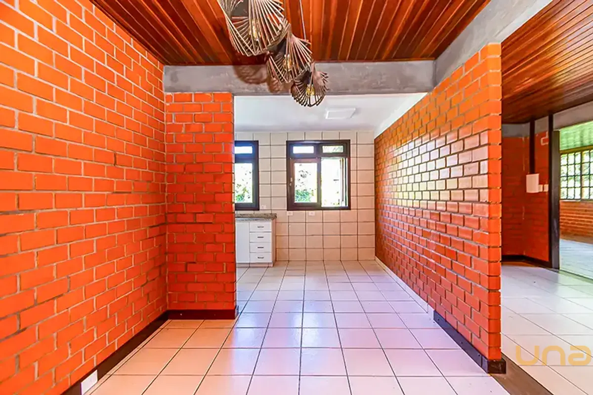CASA PRINCIPAL (170,00m²): Sala de estar com lareira, sala de Jantar, sala íntima, 03 dormitórios (1suíte), cozinha, despensa, churrasqueira e garagem coberta.