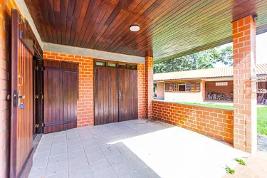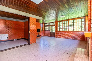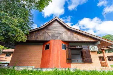 CASA PRINCIPAL (170,00m²): Sala de estar com lareira, sala de Jantar, sala íntima, 03 dormitórios (1suíte), cozinha, despensa, churrasqueira e garagem coberta.