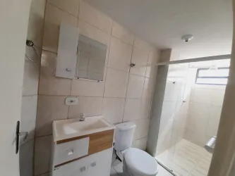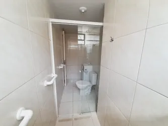 - banheiro social com armário e box tipo blindex;