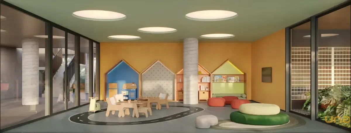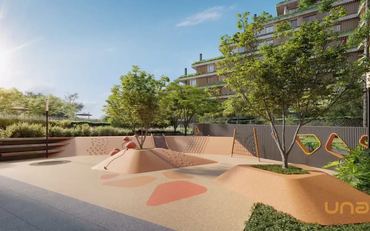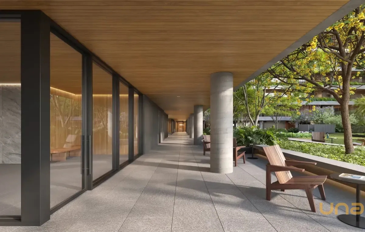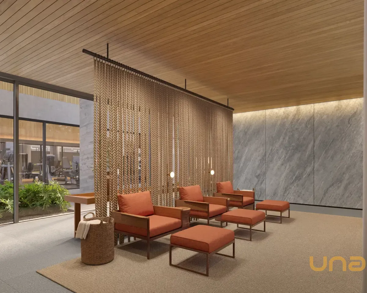 Condomínio Kaá | Comodidades: banheiro família, hall social, quadra de areia, quadra poliesportiva coberta, espaço diversão, brinquedoteca e espaço pet, piscinas coberta, descoberta, térmica, infantil e adulto, além de academia, espaço saúde e bem-estar, sauna e sala de jogos. Dispõe também de salão de festas, lounge, espaço gourmet, horta e bicicletário, escritórios, depósitos privativos, central de entregas e correspondências, vagas de visitantes (inclusive cobertas), além de vestiários e copa para funcionários, guarita blindada, eclusas social, de serviço e de veículos, além de acesso aos halls sociais com reconhecimento facial e elevadores sociais com biometria. O condomínio também oferece o aplicativo My Wellness para gestão de atividades.