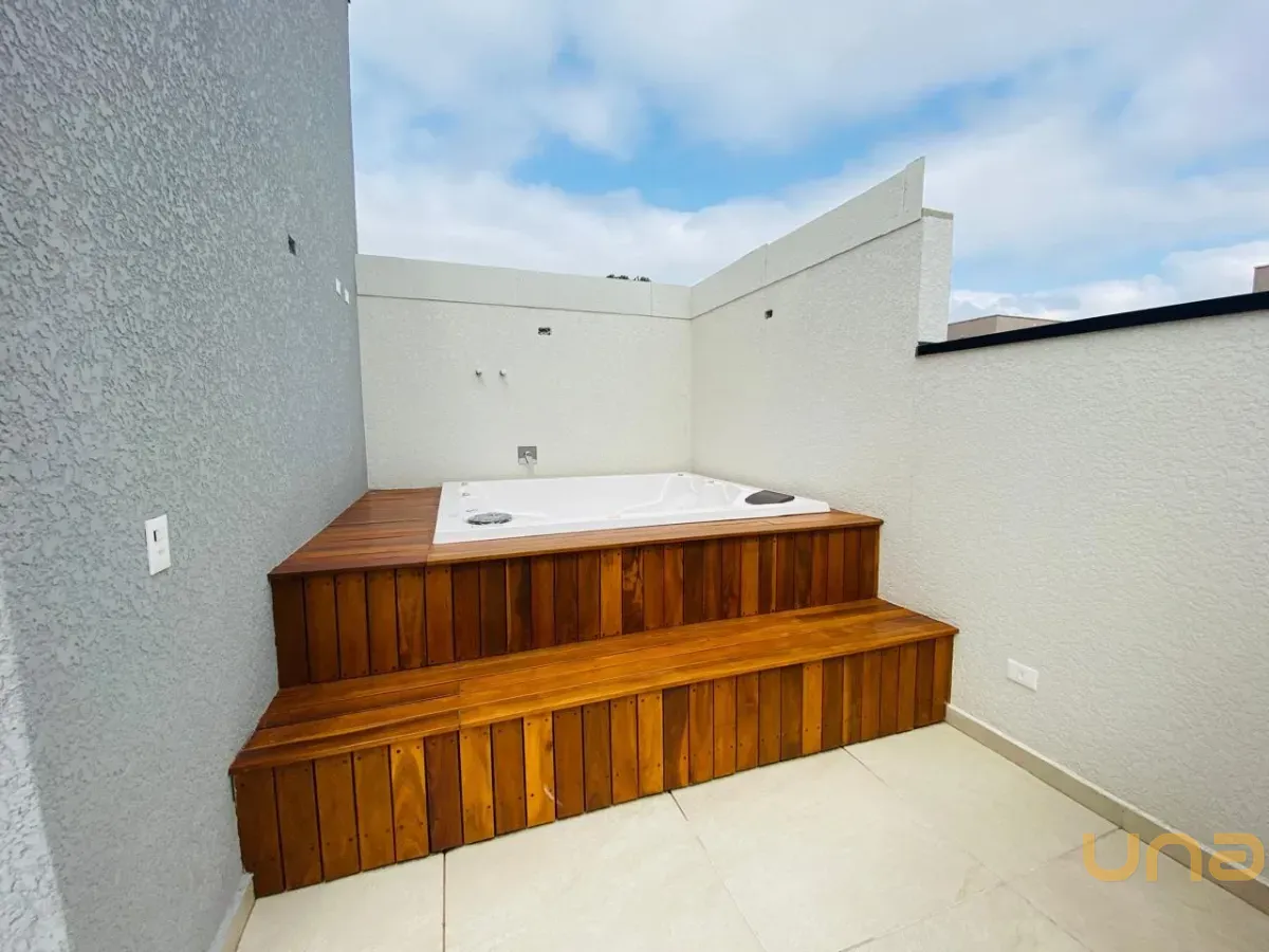 Imóvel com sala para 02 ambientes com acesso ao garden com churrasqueira, cozinha, lavabo, área de serviço com passagem para a garagem, 03 suítes, sendo 02 com sacada, ático com banheiro social e terraço contendo spa com banheira. Garagem para ao menos 02 carros.