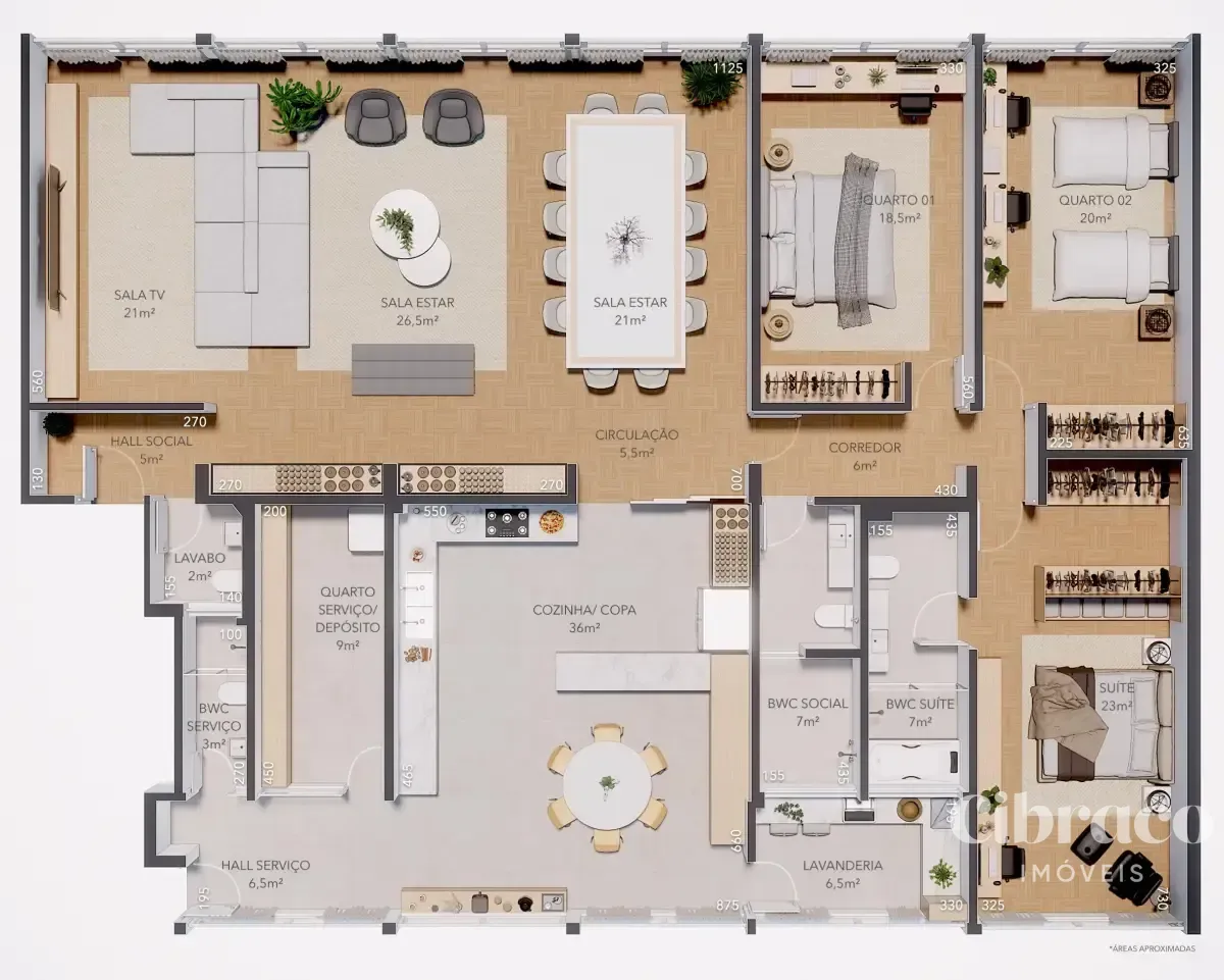*Imagens dos ambientes decorados em 3D.