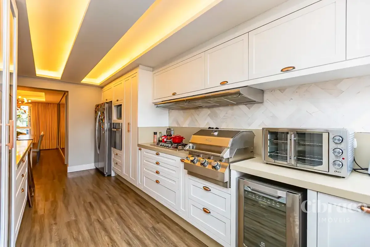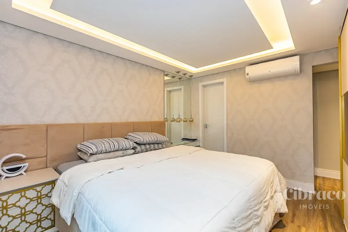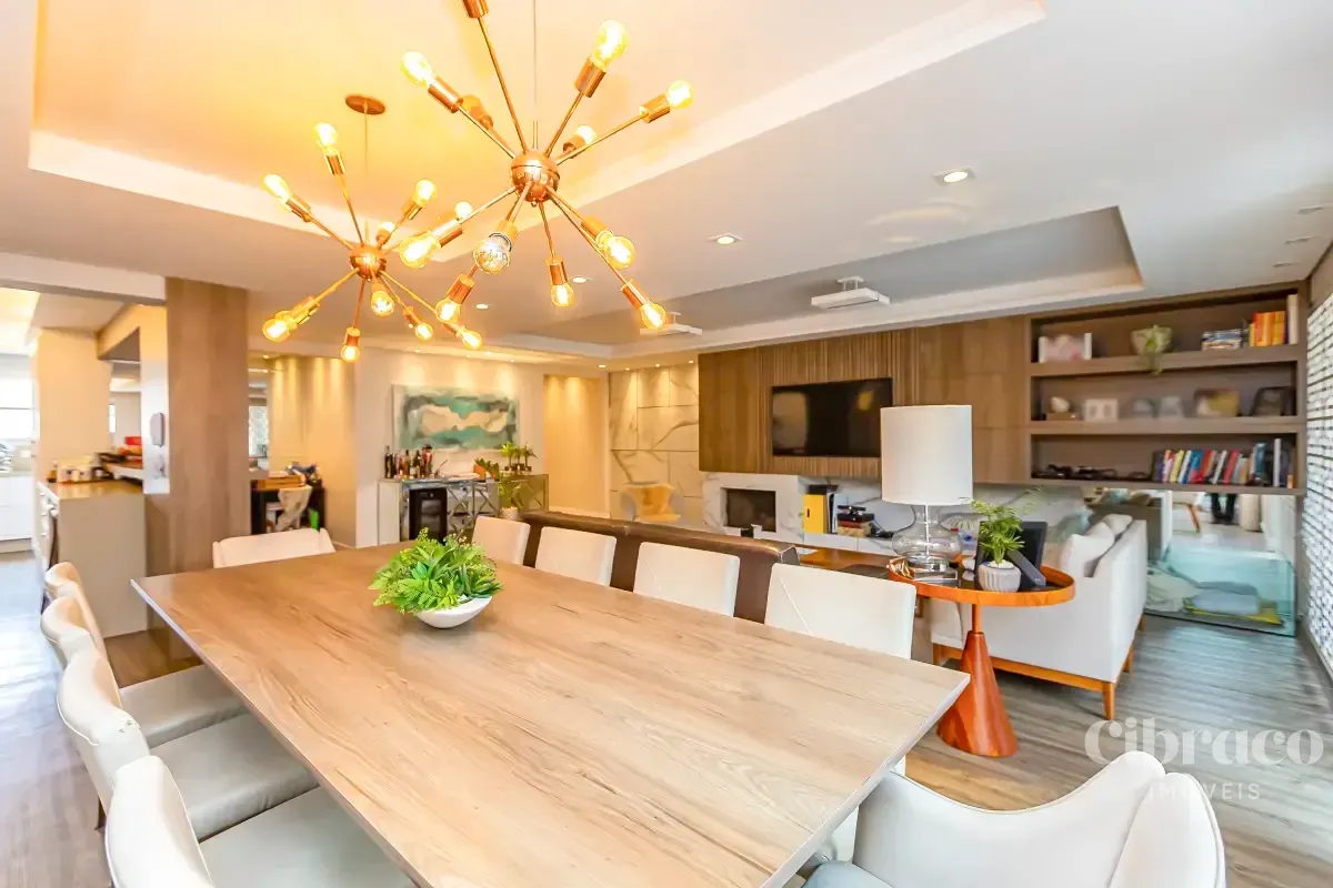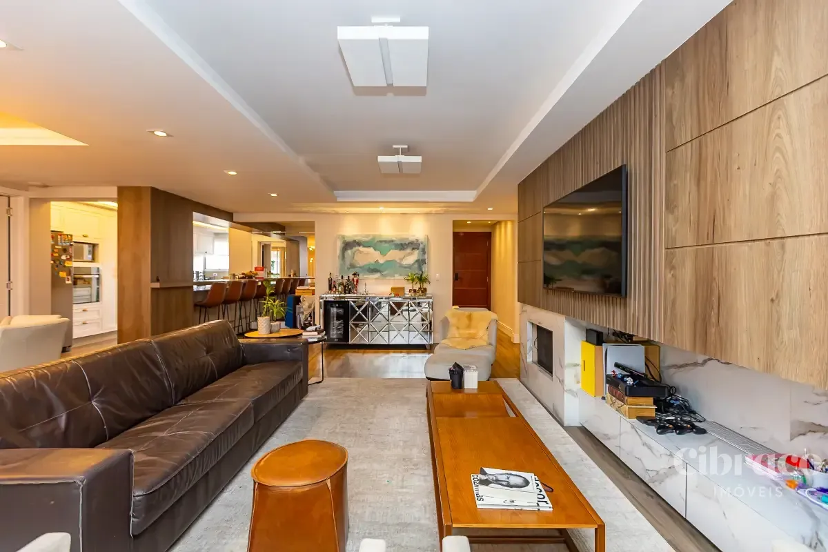 Com 3 dormitórios, sendo 1 suíte com ar-condicionado, o imóvel oferece ambientes bem distribuídos e aquecidos, garantindo conforto térmico em todas as estações do ano. A área social se destaca por uma sala ampla, extremamente iluminada, que valoriza o projeto de interiores exclusivo, trazendo elegância e personalidade ao espaço.