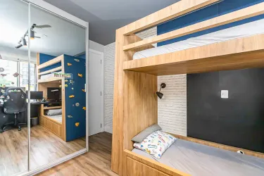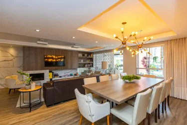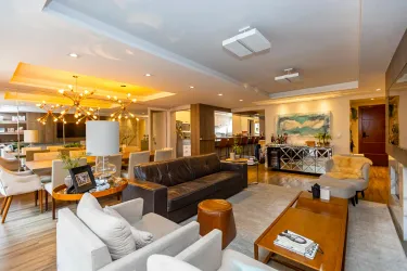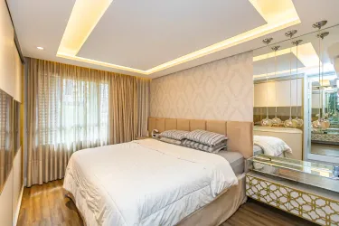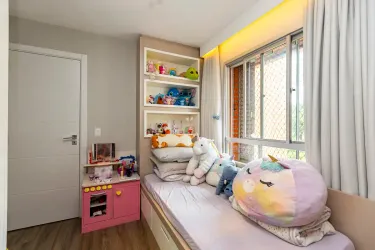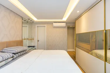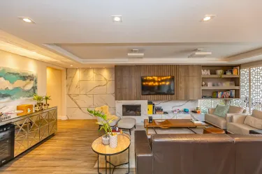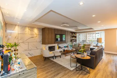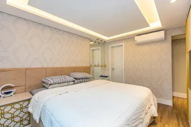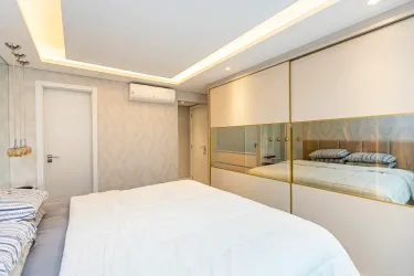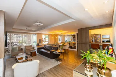 Com 3 dormitórios, sendo 1 suíte com ar-condicionado, o imóvel oferece ambientes bem distribuídos e aquecidos, garantindo conforto térmico em todas as estações do ano. A área social se destaca por uma sala ampla, extremamente iluminada, que valoriza o projeto de interiores exclusivo, trazendo elegância e personalidade ao espaço.