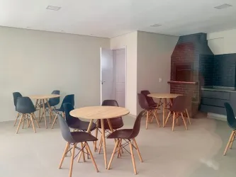 O imóvel conta com 1 dormitório sendo suíte, sala confortável com acesso à sacada, cozinha com iluminação natural e lavanderia, proporcionando um ambiente funcional e bem distribuído.