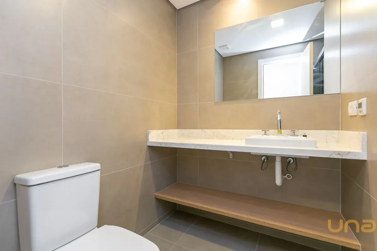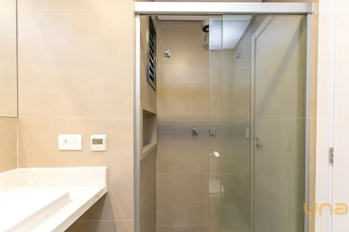 - Banheiros social e suíte com box vidro temperado, piso aquecido e espelhos;