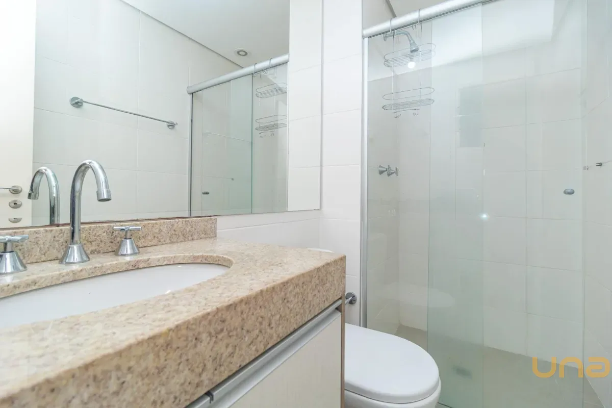Na área íntima, o imóvel dispõe de um dormitório aconchegante e uma suíte que se destaca pelo excelente estado dos armários e pelo cuidado nos acabamentos. Os banheiros seguem o mesmo padrão, com marcenaria sob medida e box em vidro, trazendo elegância e funcionalidade.