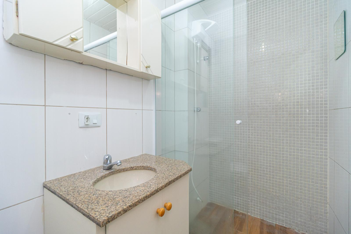 - Banheiro com armário, espelho e box em blindex
