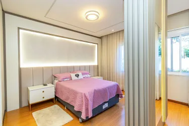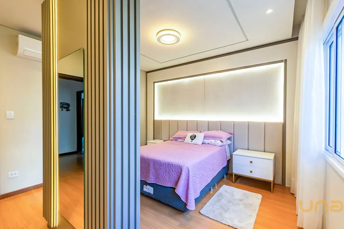 Suíte master reformada com móveis planejados