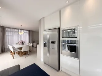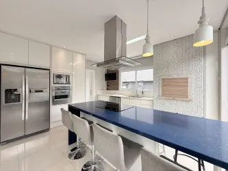 - Cozinha mobiliada, com móveis planejados, fogão de indução, coifa, forno e microondas;