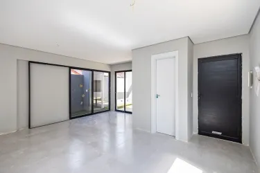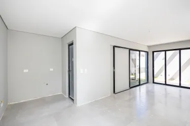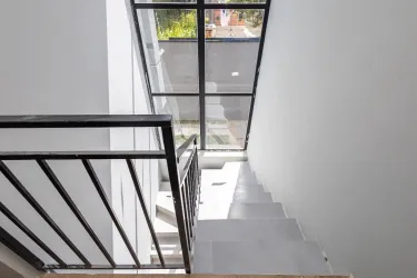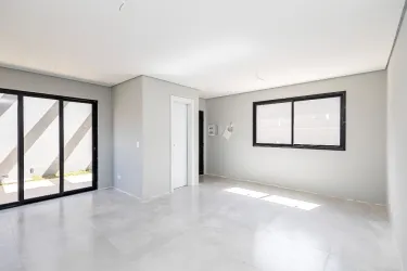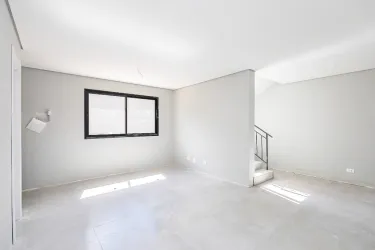Sobrado 4, lateral, conta com sala para 2 ambientes, lavabo, cozinha em conceito aberto e área de serviço.