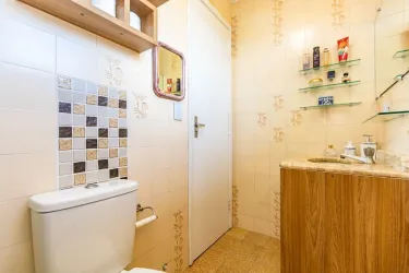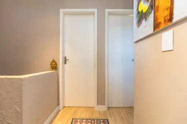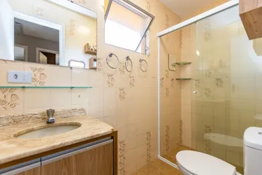 - 2º Piso: 03 dormitórios sendo 01 com sacada; banheiro social com armário, box blindex e espelho; piso laminado nos dormitórios e cerâmica no banheiro.