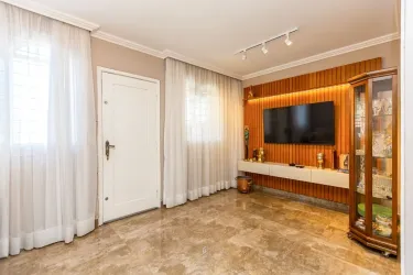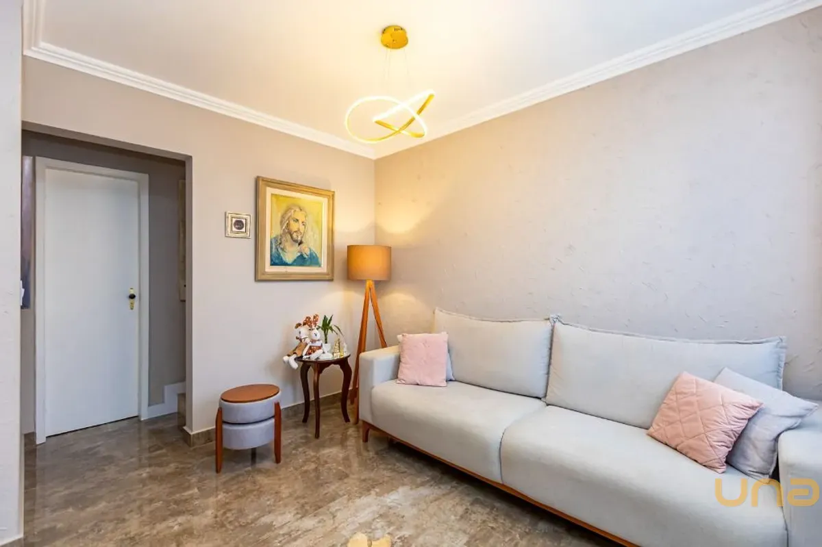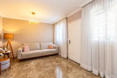 - 1º Piso: Sala para dois ambientes com painel; lavabo; cozinha com armários planejados; área de serviço externa e coberta; piso todo em porcelanato.