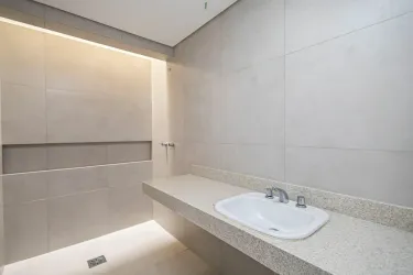 - Lavabo e terraço descoberto com churrasqueira;